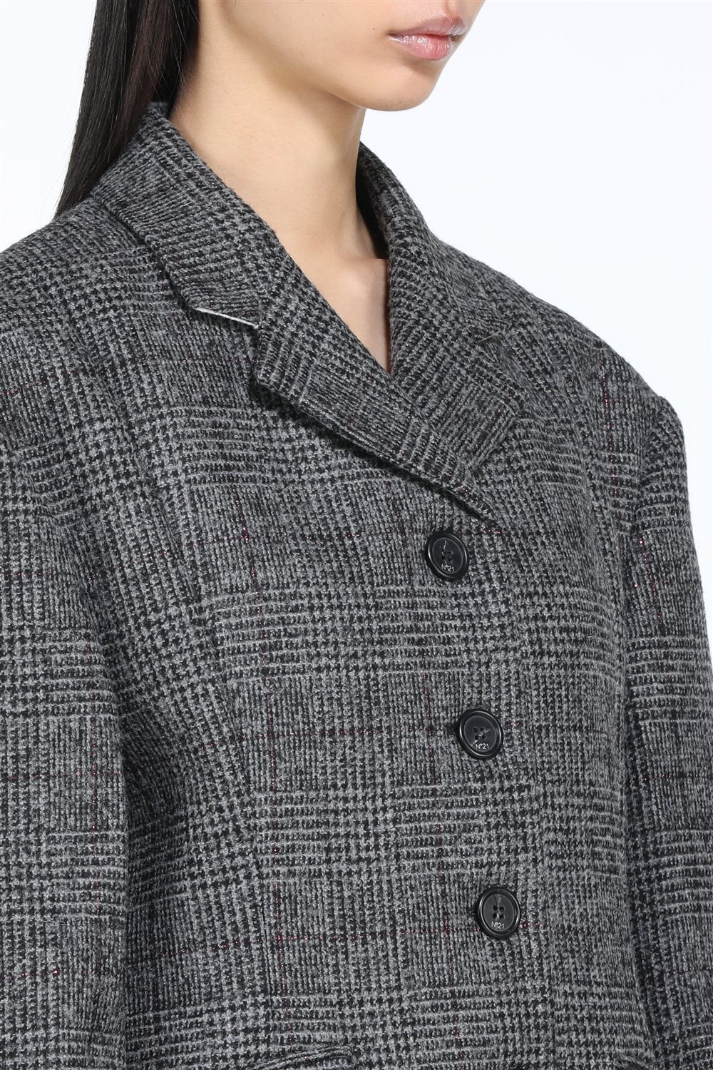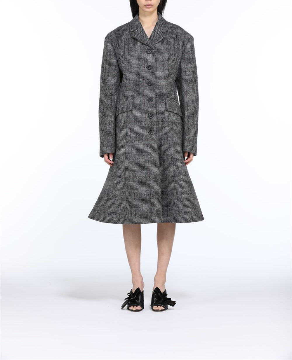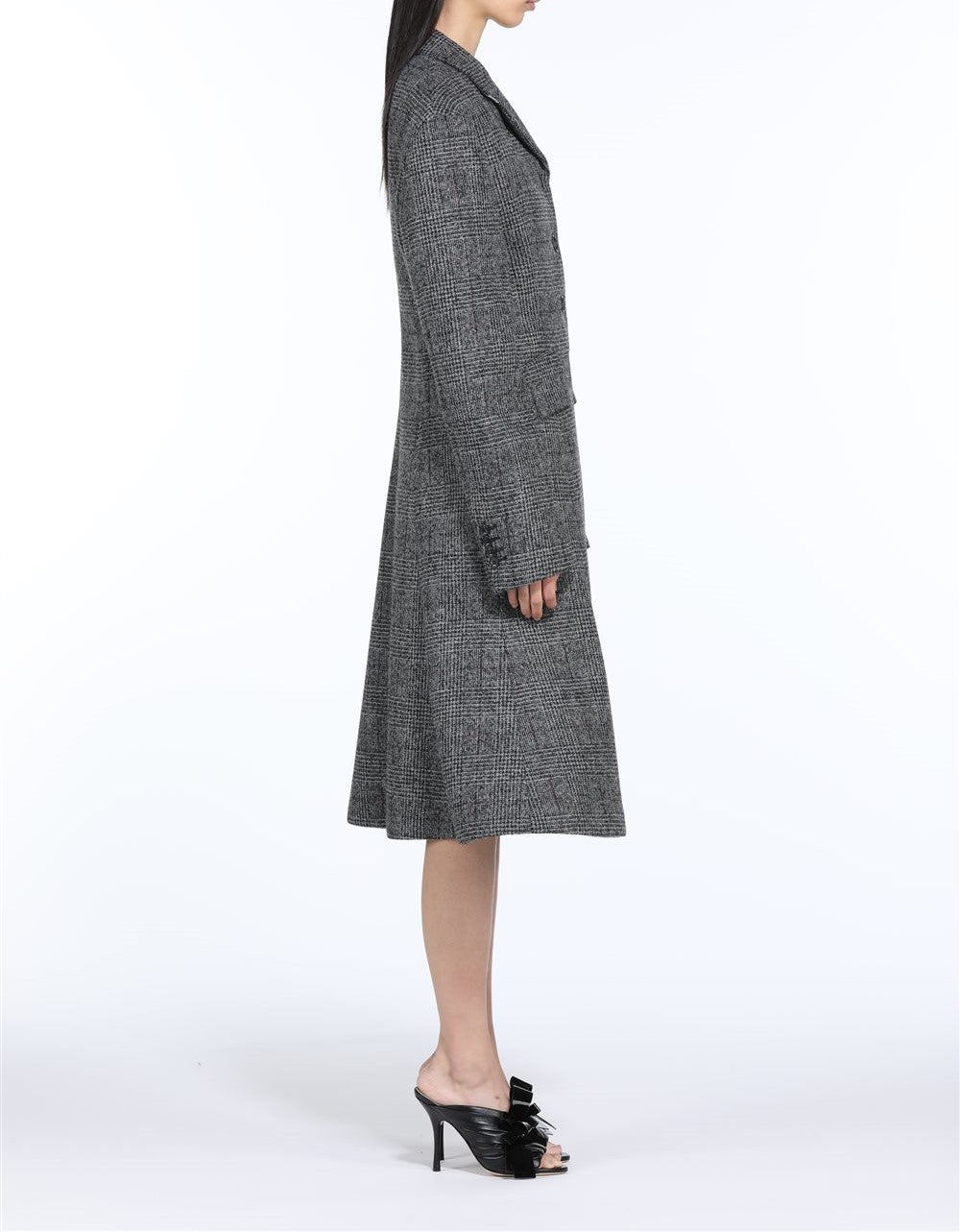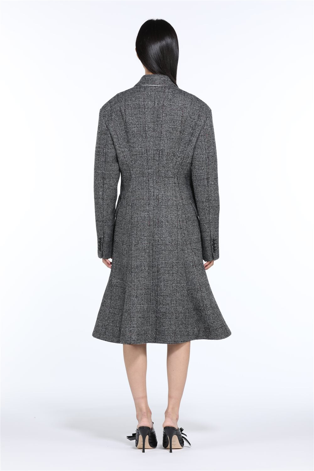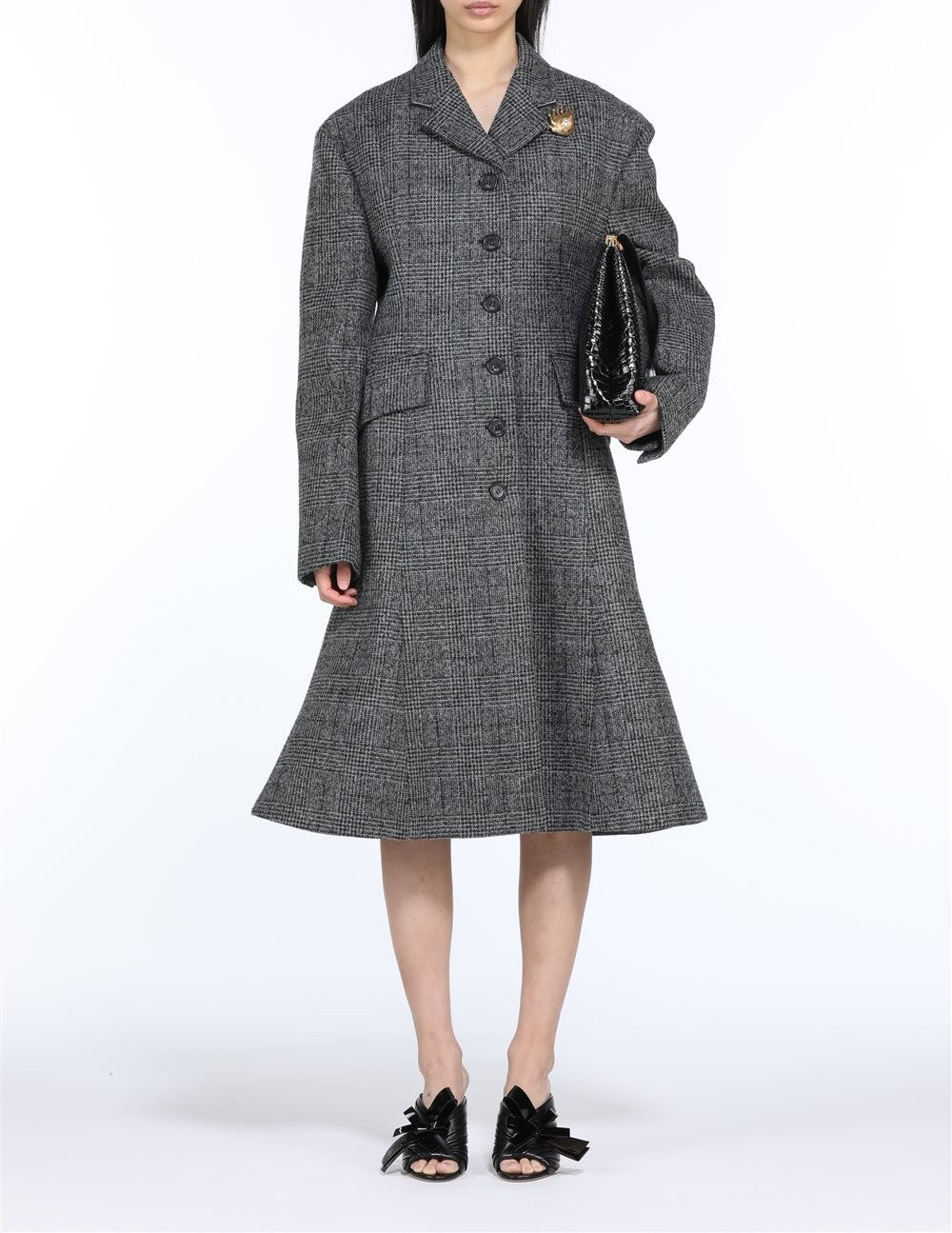 The N21 coat features a flared silhouette with a black and white check pattern, expertly made in Italy.