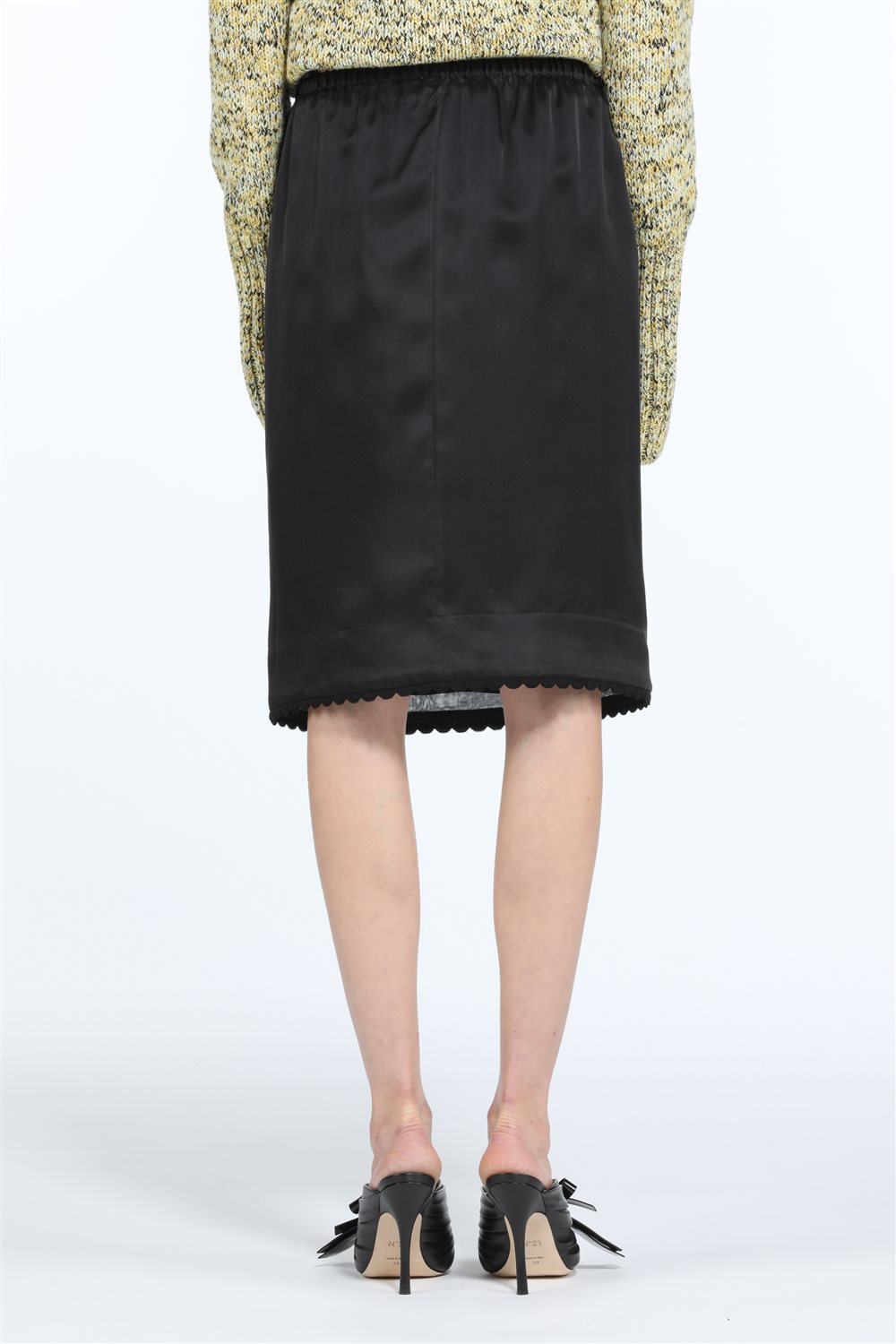 The N21 black skirt features a refined straight cut and an exclusive hem design, meticulously made in Italy.