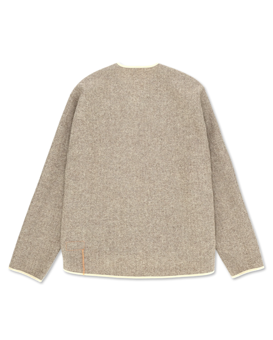 지퍼 잠금장치와 앞면 패치 포켓이 있는 매우 가벼운 울 재킷.