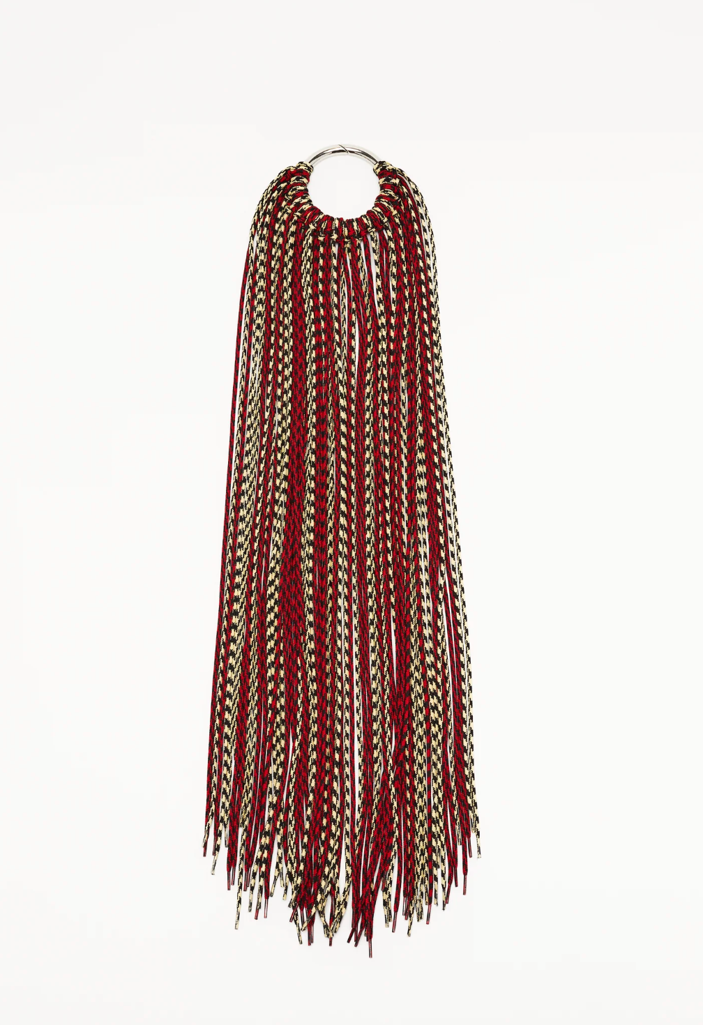 Multicolor rope fringed carabiner.