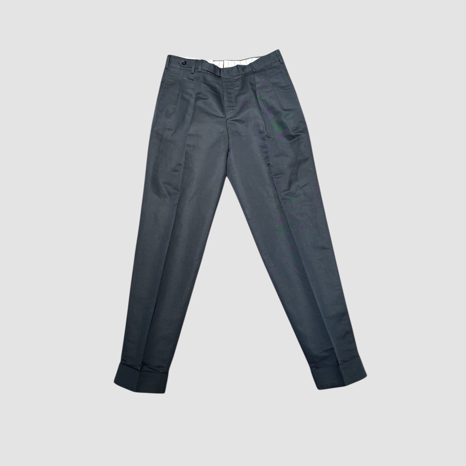 Elegant carrot-cut trousers crafted from light cotton twill. Featuring structured pleats, practical back pockets, and a tailored turn-up hem.