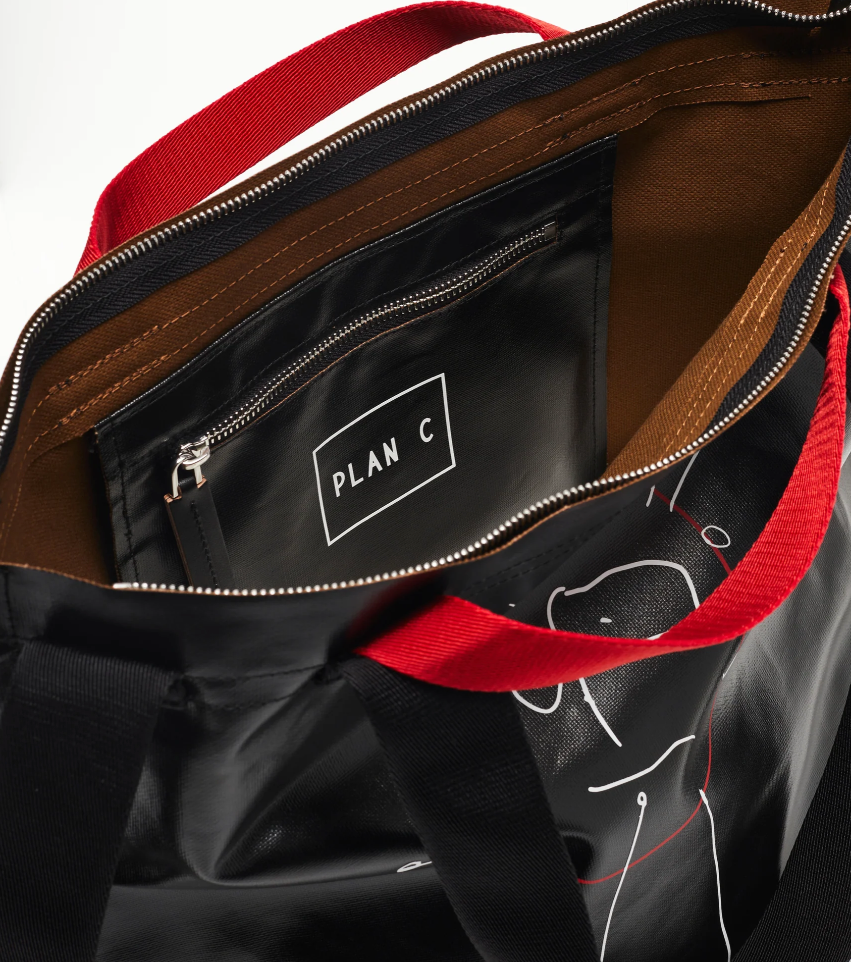 White Plan C shopper with playful Pilli print – stylish and easy.