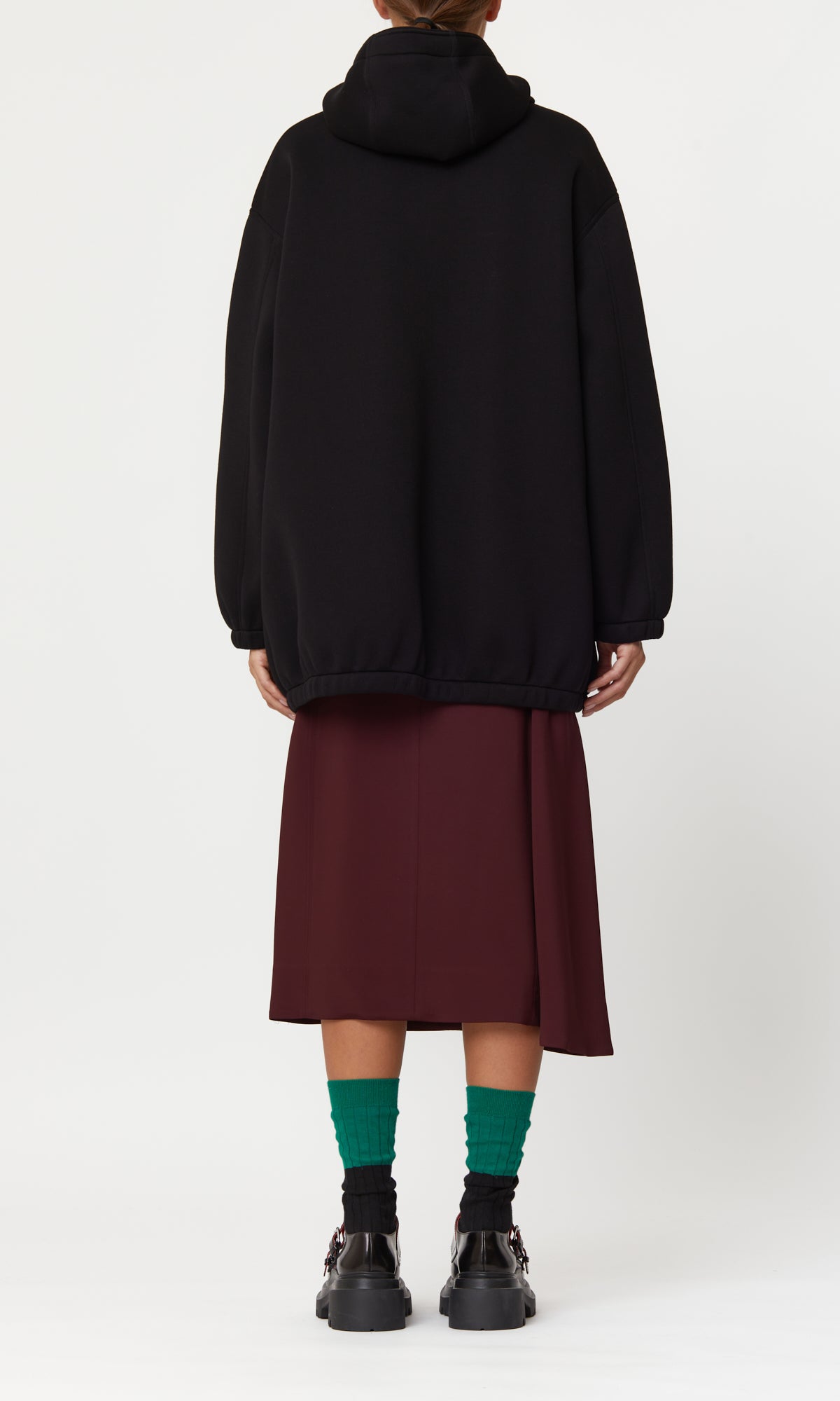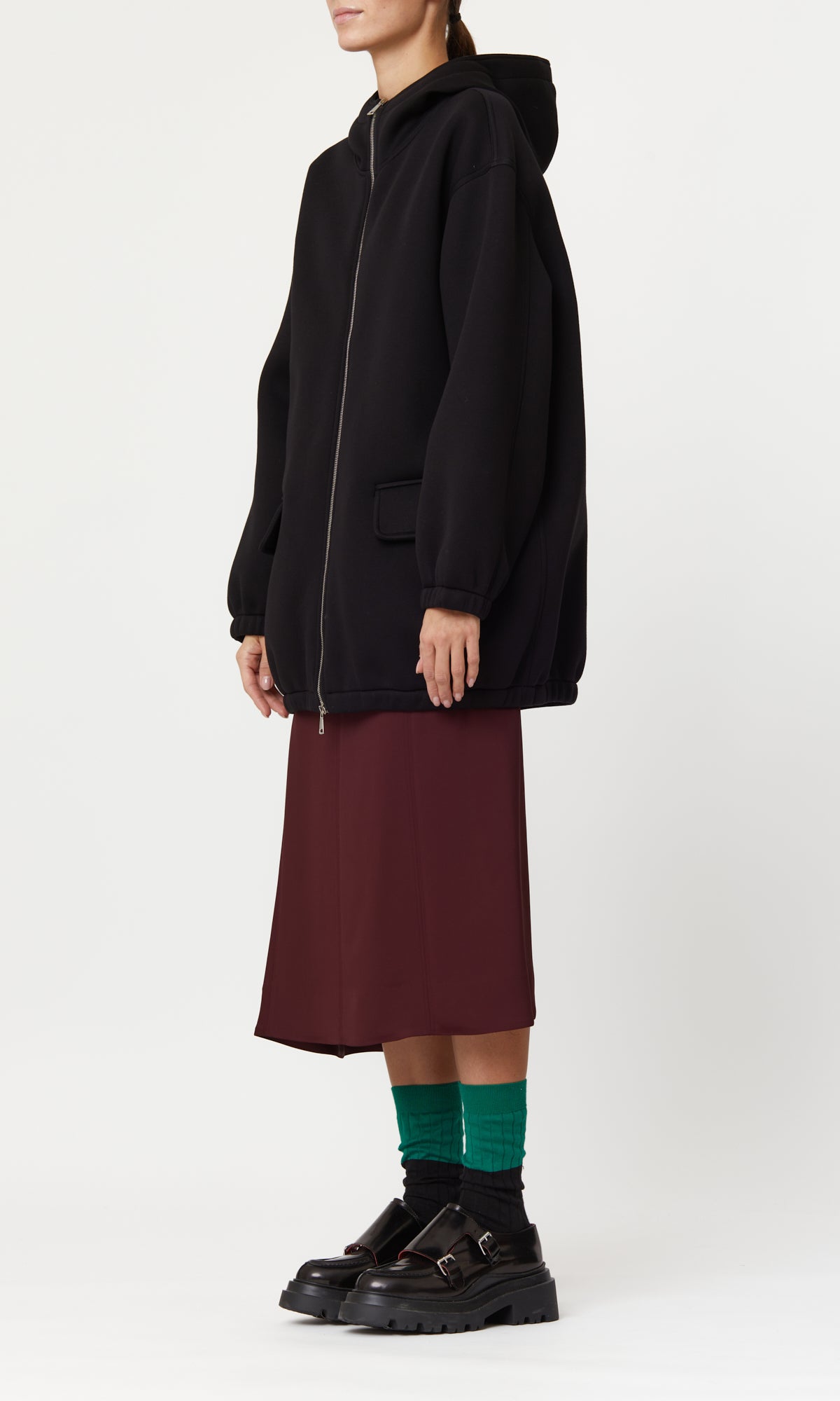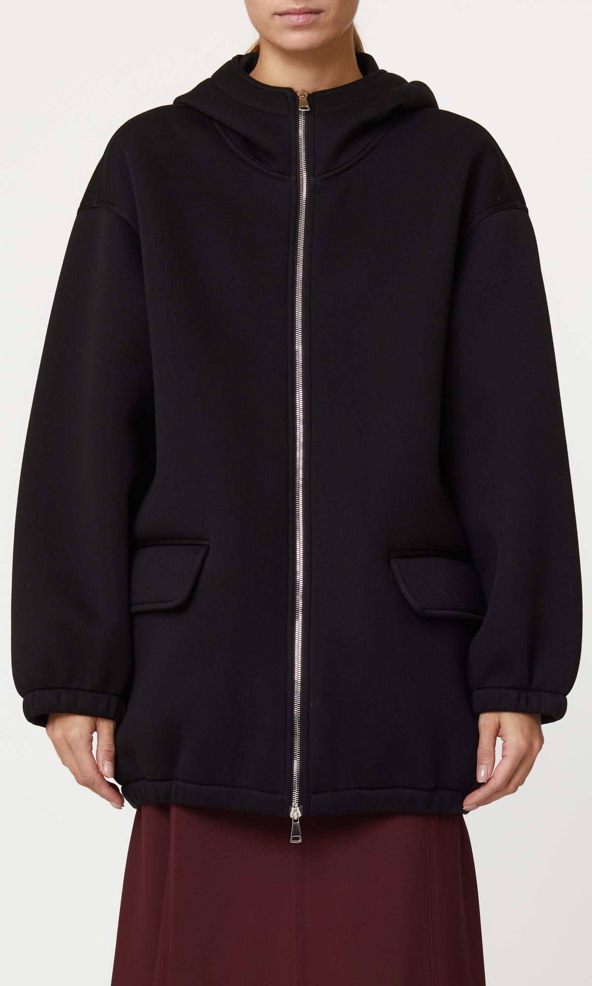 This black jacket is crafted entirely from 100% viscose knit, offering a soft and comfortable feel. It features a zip closure for easy wear and is expertly made in Italy, ensuring high-quality craftsmanship. A stylish and reliable addition to your wardrobe.