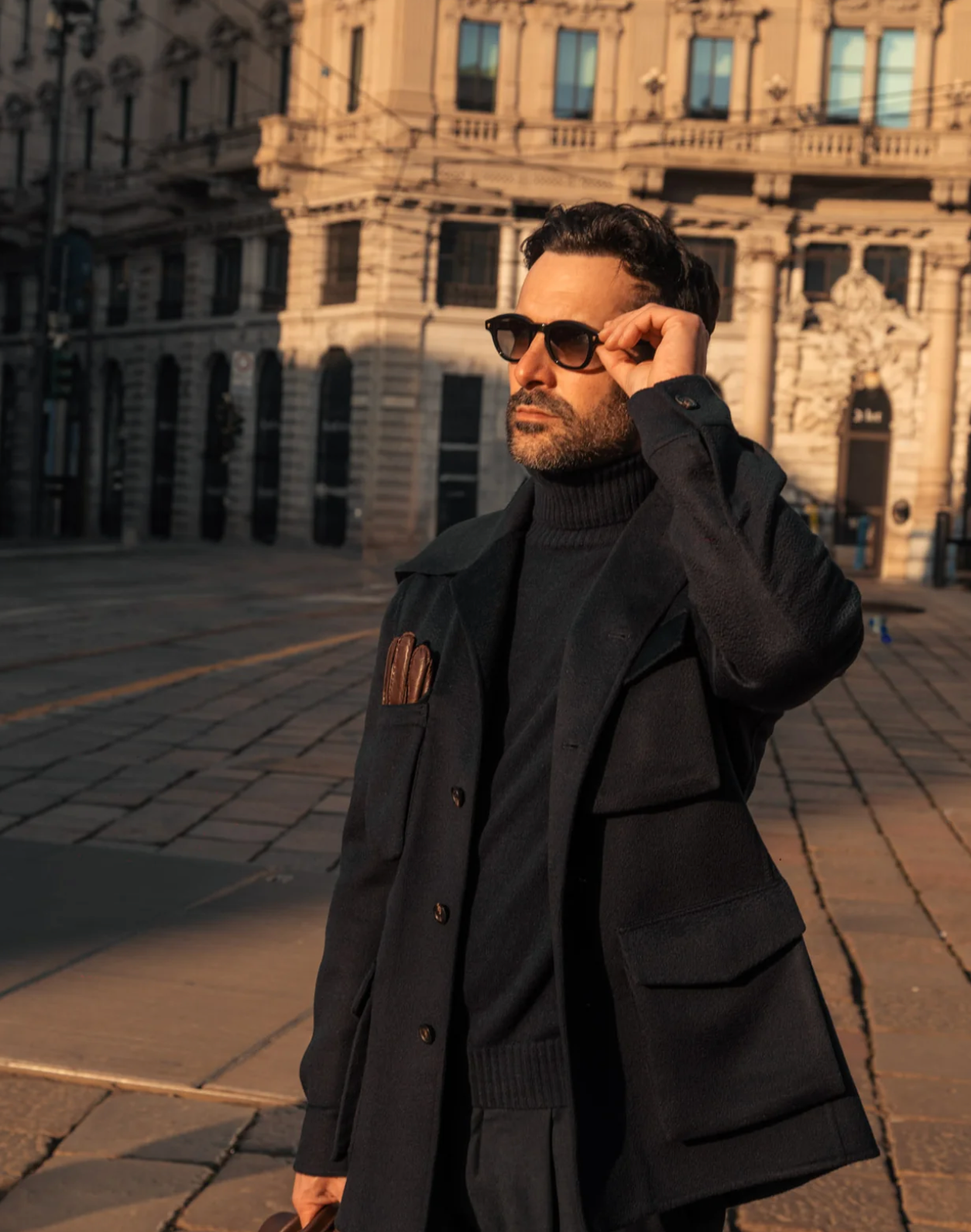 For the Autumn/Winter season, Rifugio offers a line of perfectly designed, luxury outerwear, guaranteeing comfort during the coldest months of the year. Crafted from luxury Loro Piana Favola double fabric, the "Chamonix" field jacket provides high performance in the wind. It features removable body and collar fur lining. (Available in navy as shown in the last photo.)