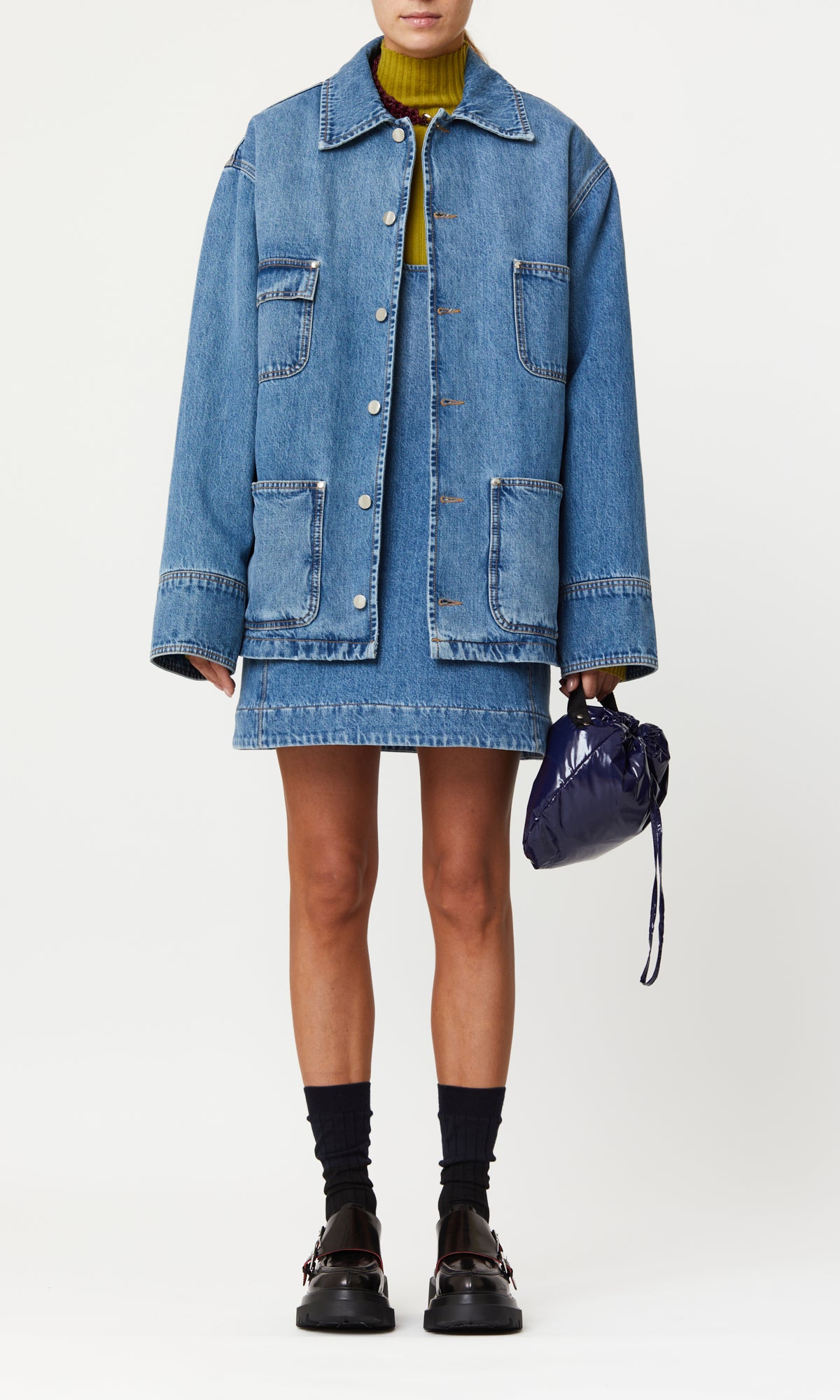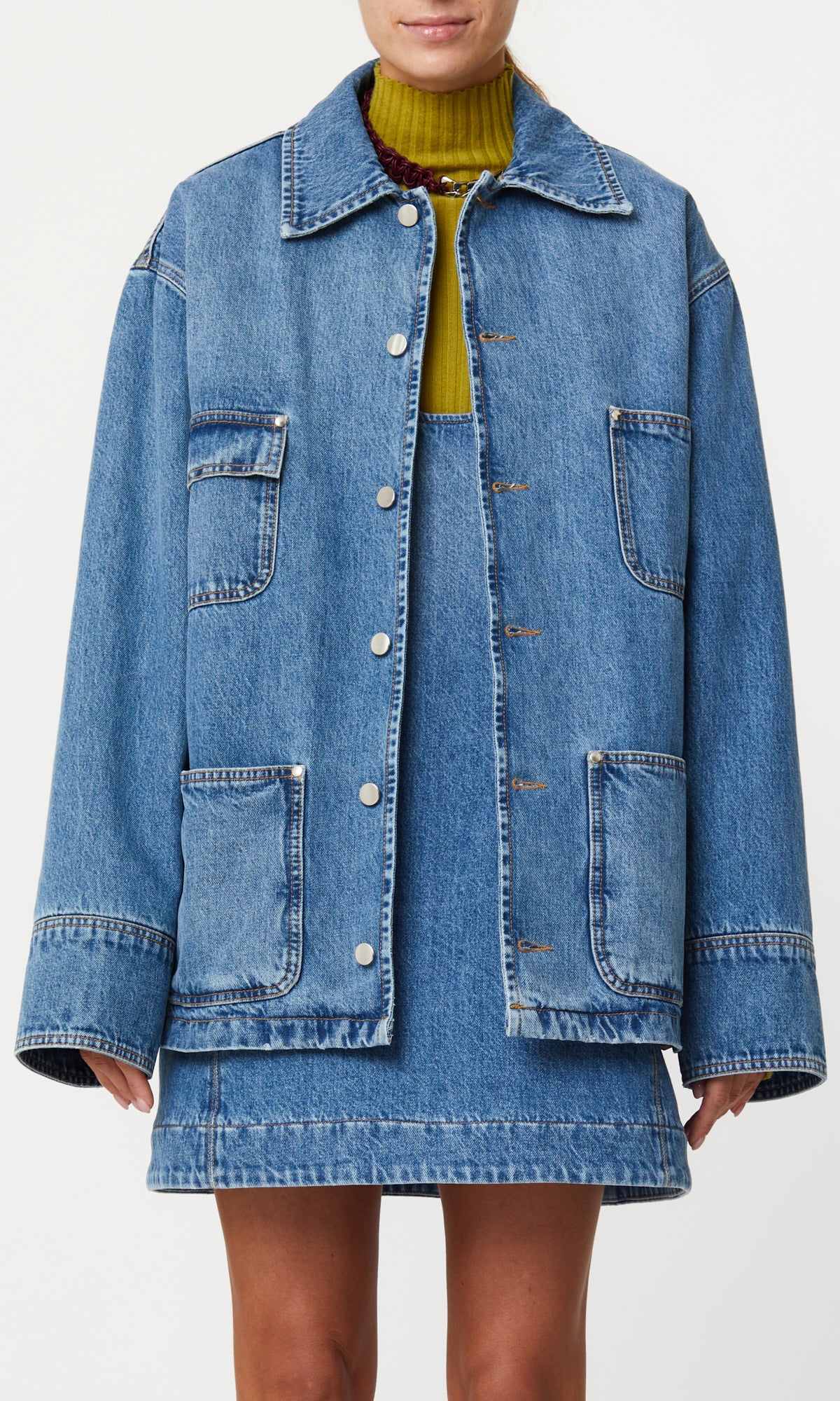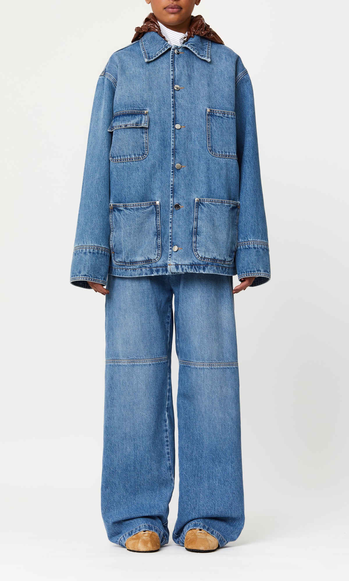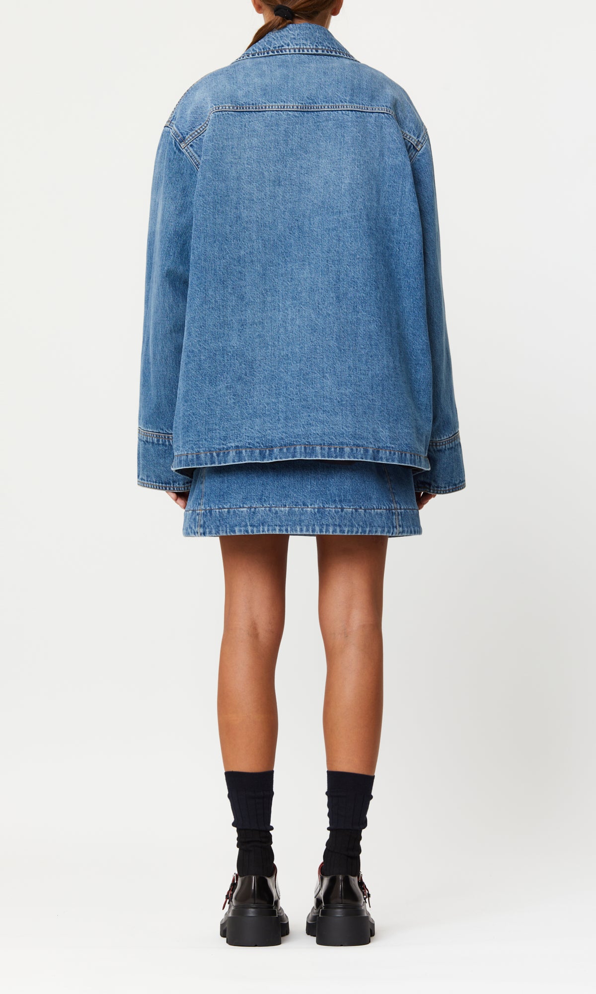 This oversized denim jacket offers a stylish, relaxed fit and is crafted from 100% cotton. Proudly made in Italy, it combines quality and comfort for a cool, casual look.