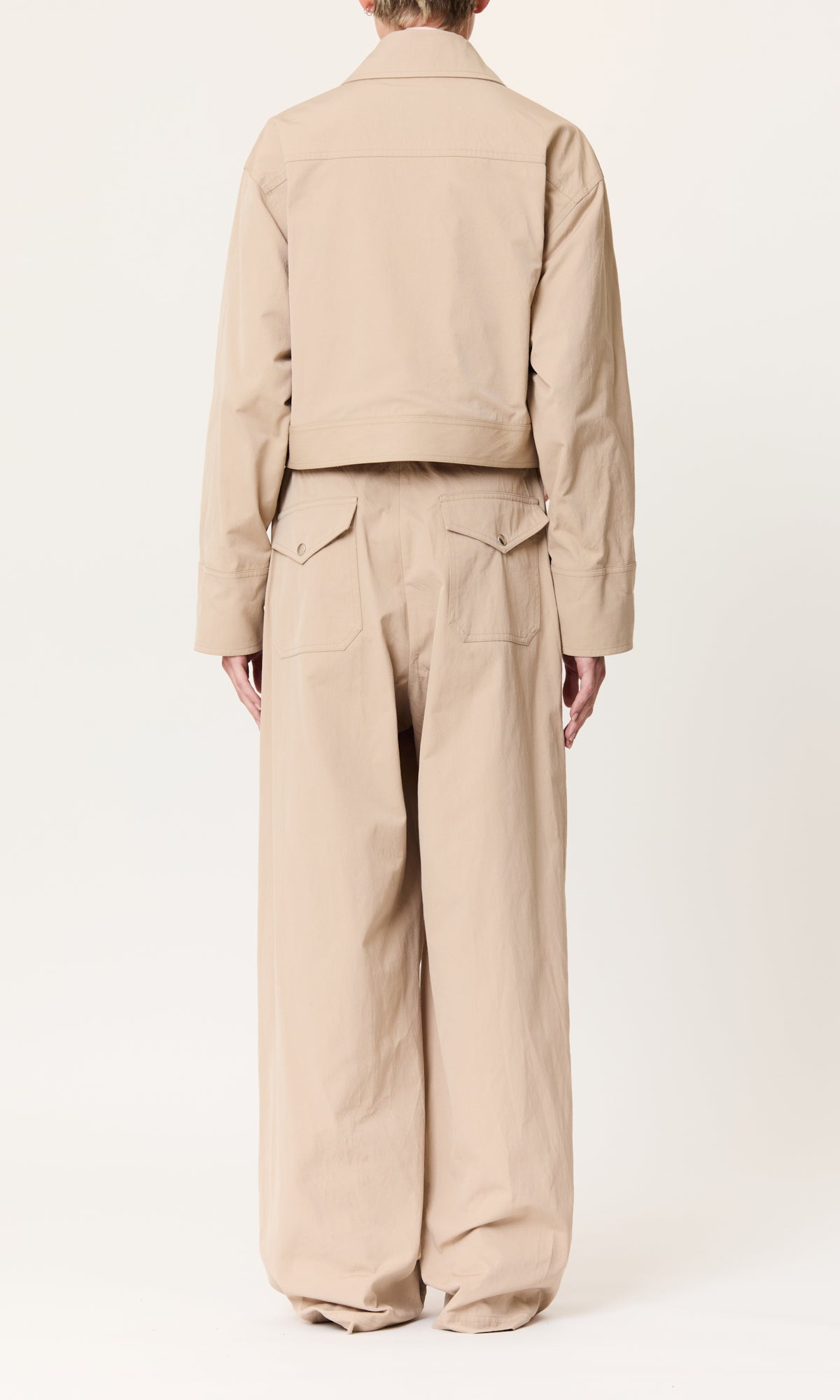 Relaxed boxy silhouette jacket by PLAN C in warm sand tones, complete with practical pockets. A contemporary essential that balances comfort with sophisticated minimalism, perfect for layering across seasons.