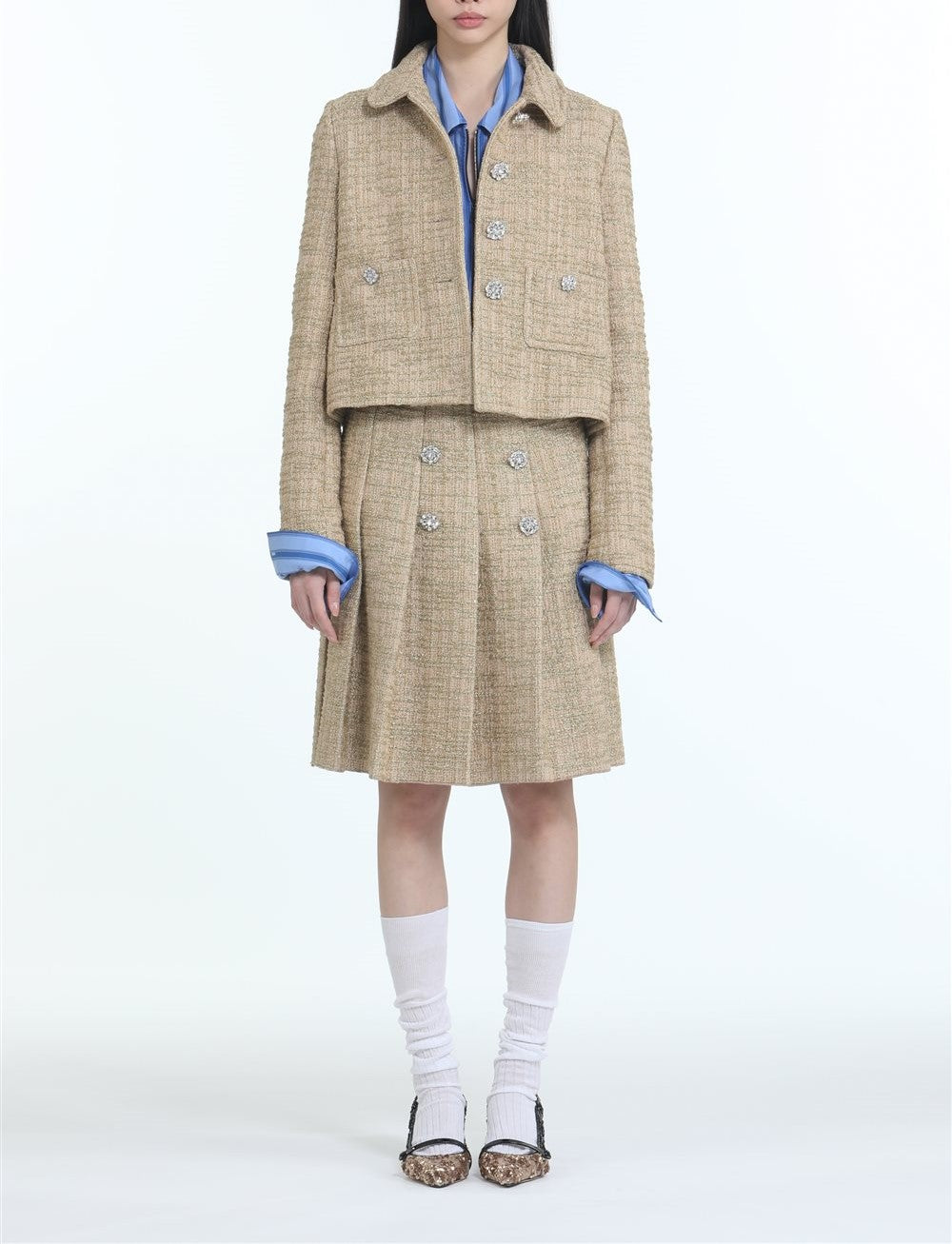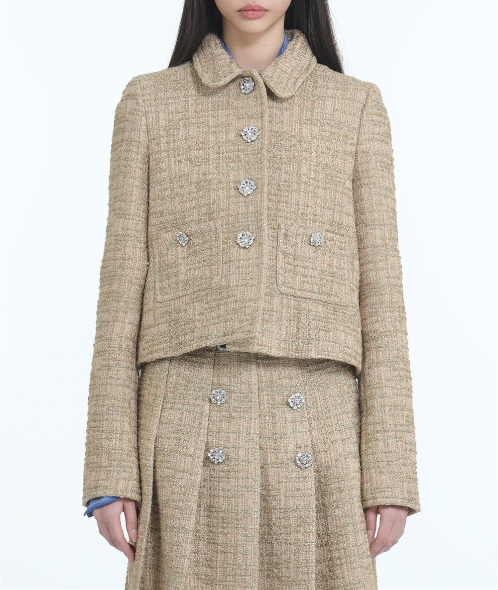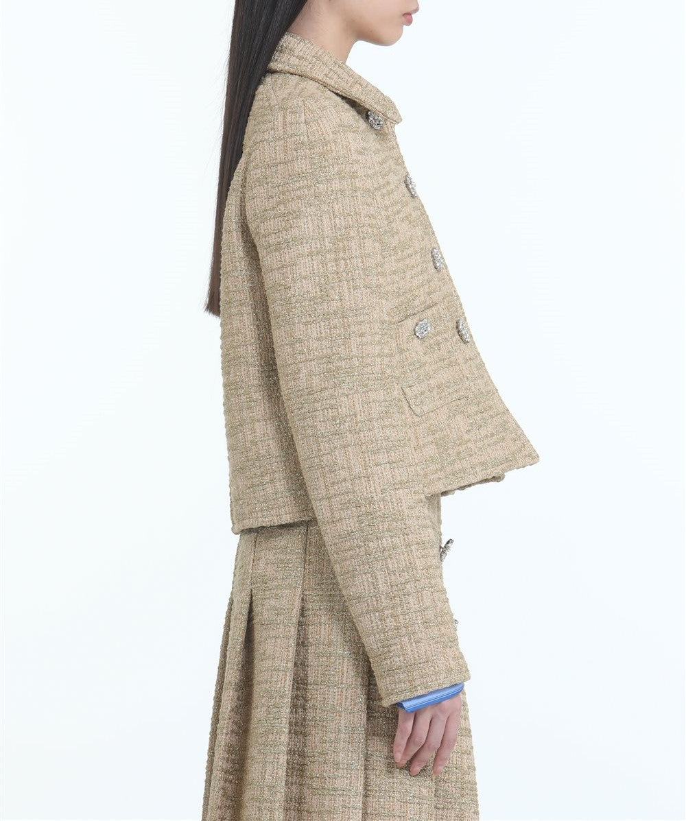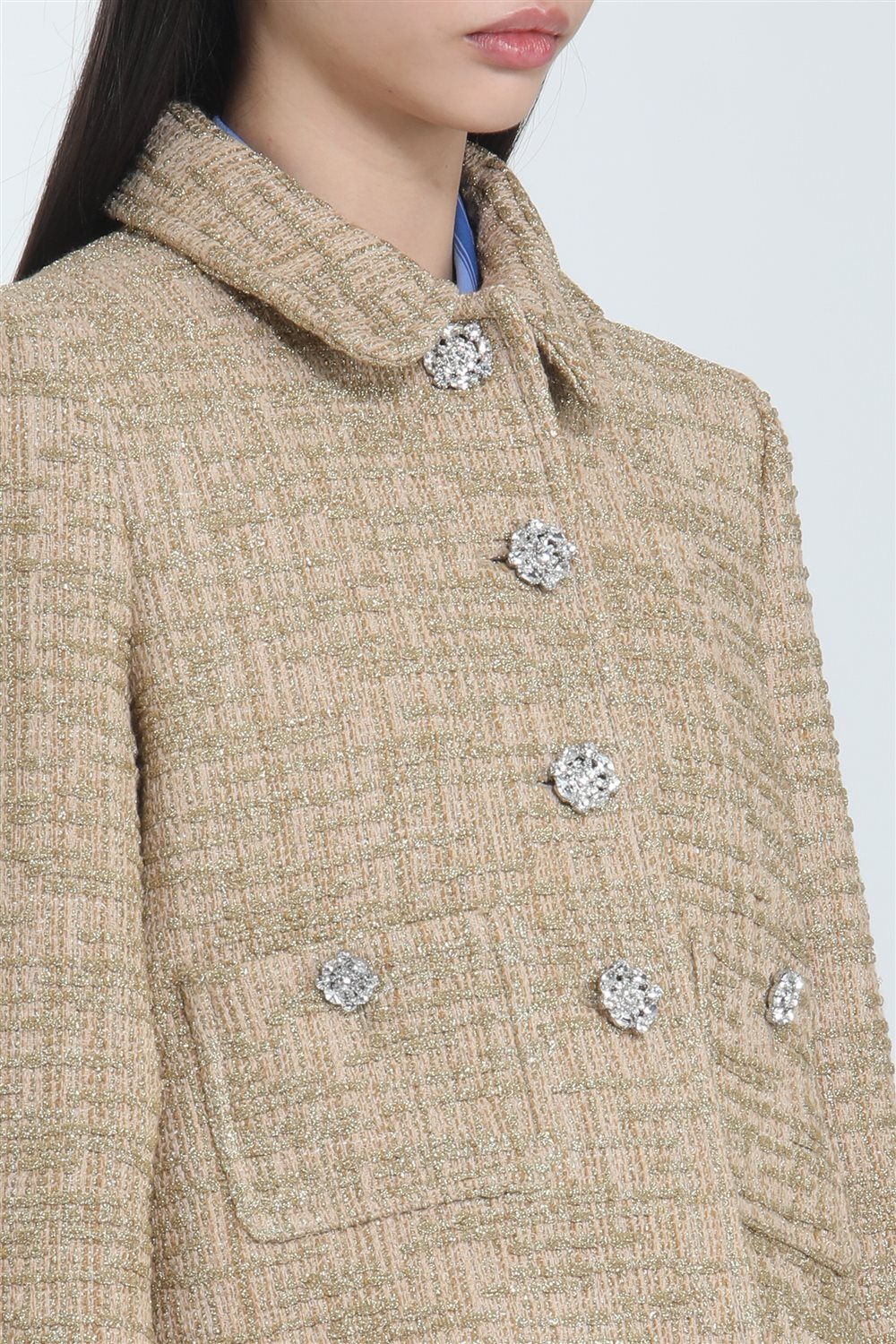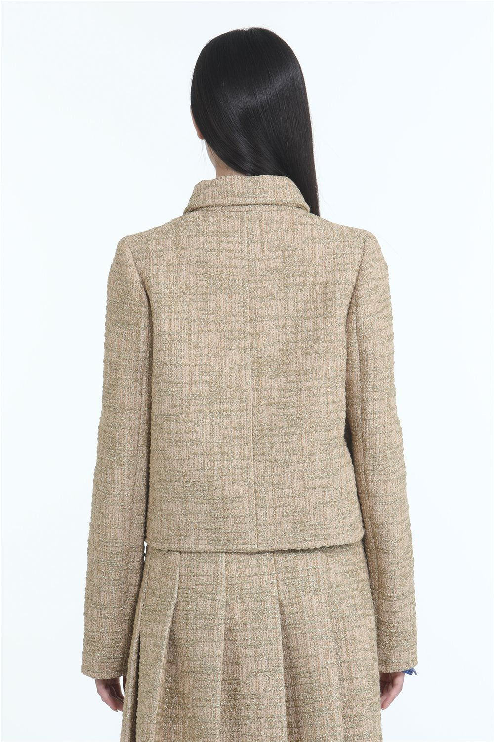 The N21 jacket in striking yellow gold is designed with convenient patch pockets, offering both eye-catching style and functional appeal.