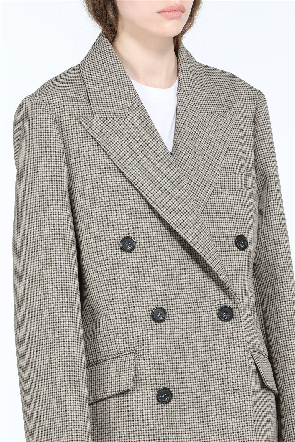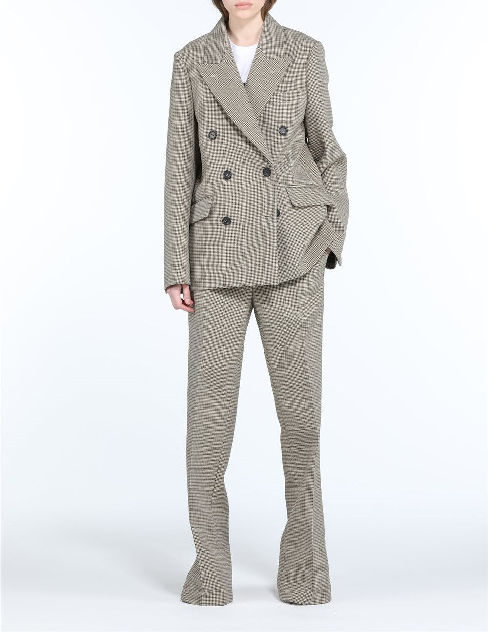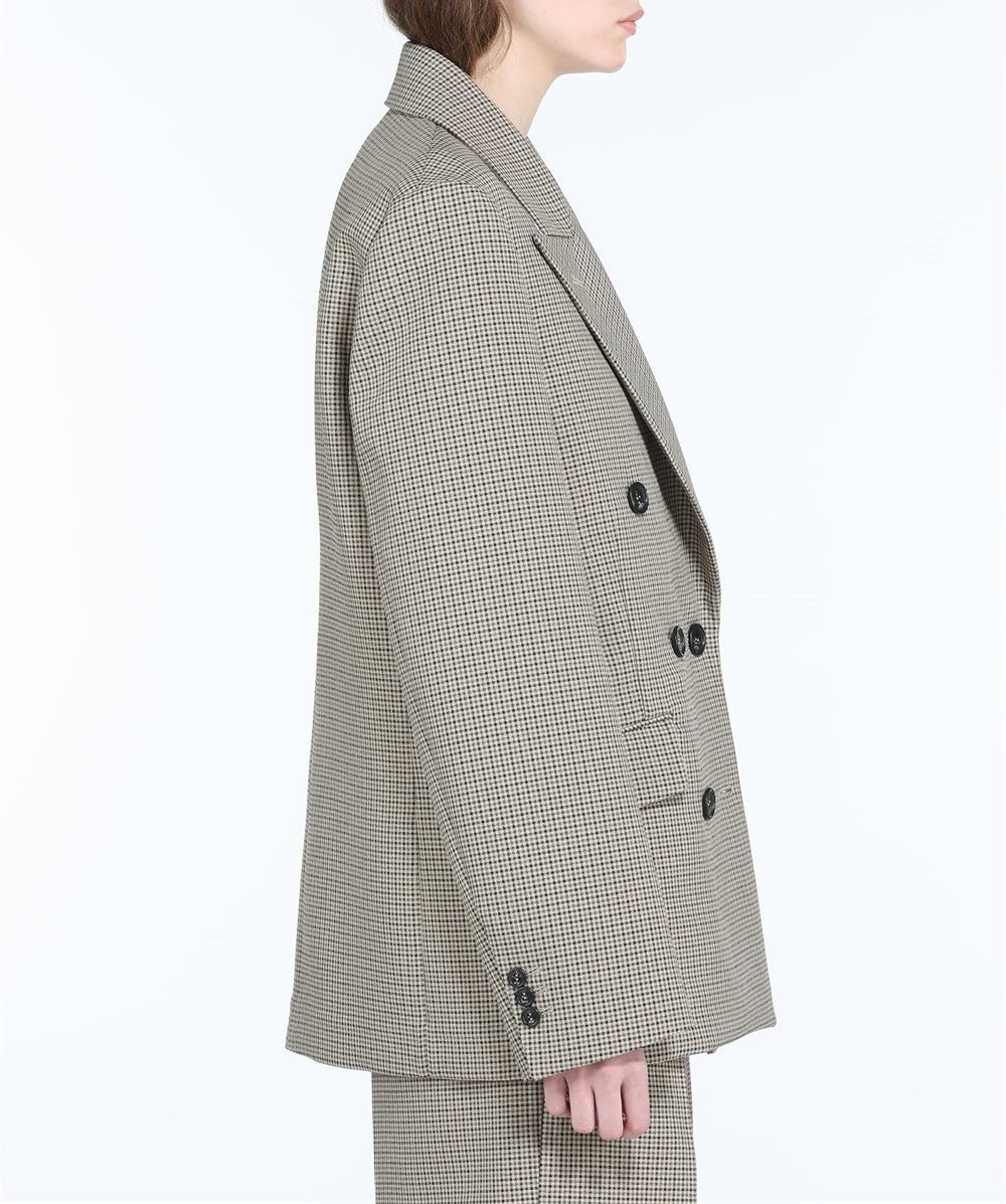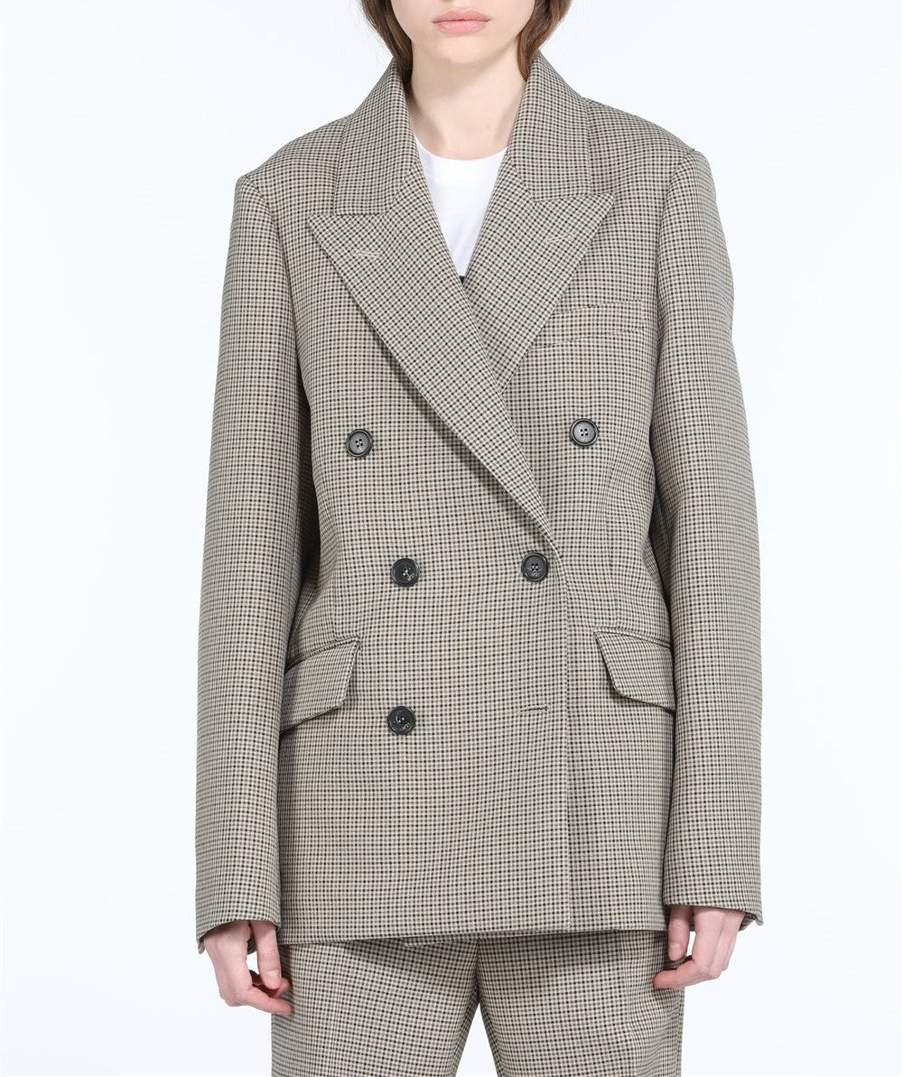 The N21 Jacket features a classic double-breasted check pattern and is expertly made in Italy, offering timeless style and quality craftsmanship in a sleek design.