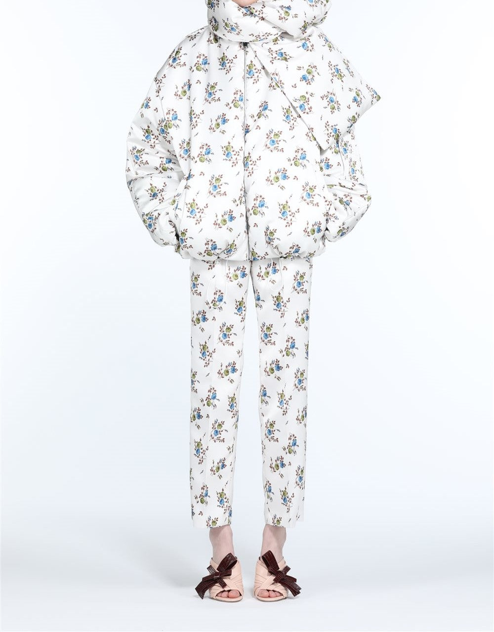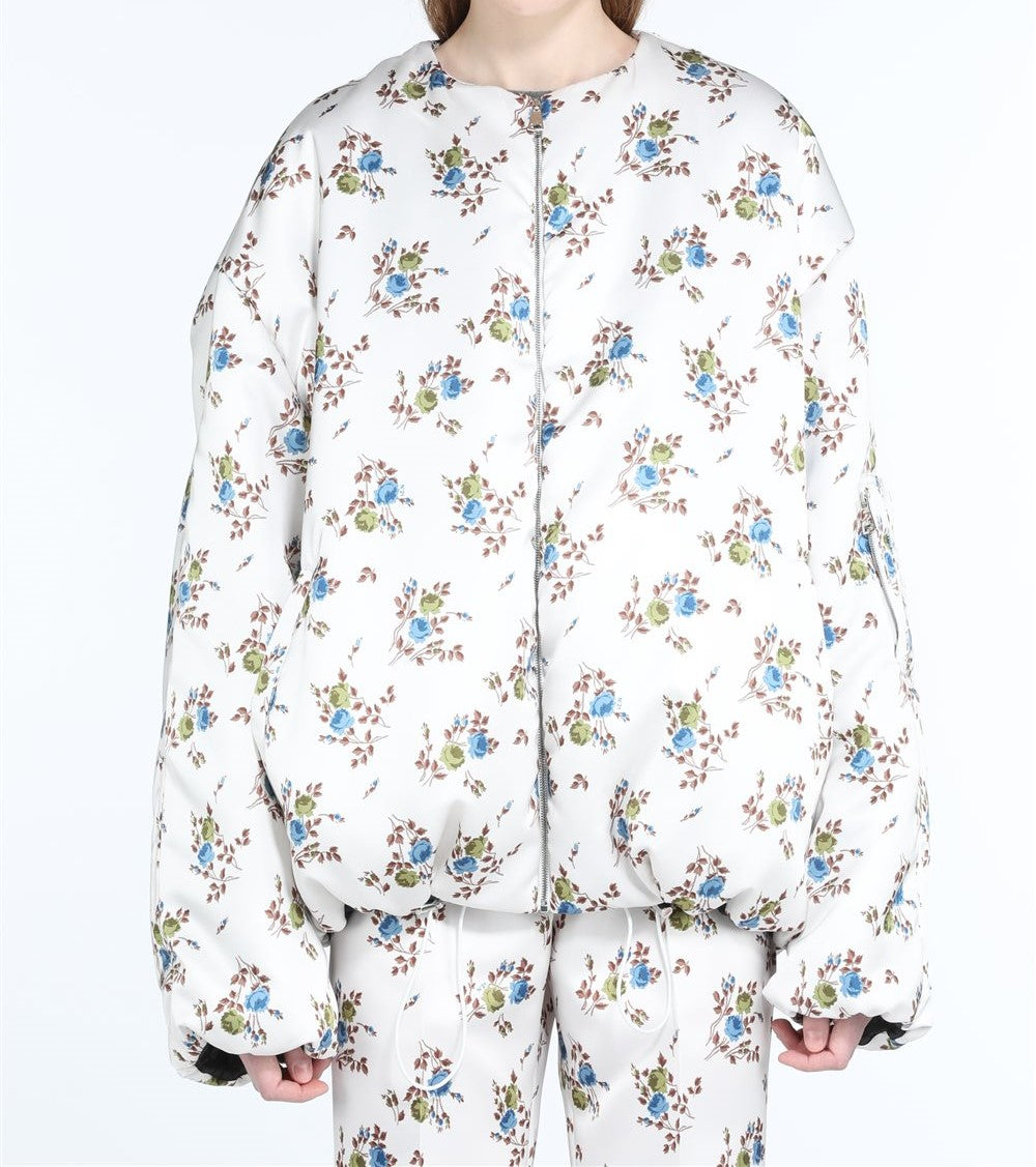 This sporty jacket features a crisp white background adorned with a vibrant floral design, bringing a fun and energetic vibe to your outfit. Crafted with care in Italy.