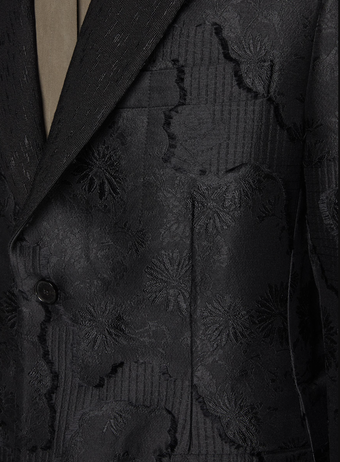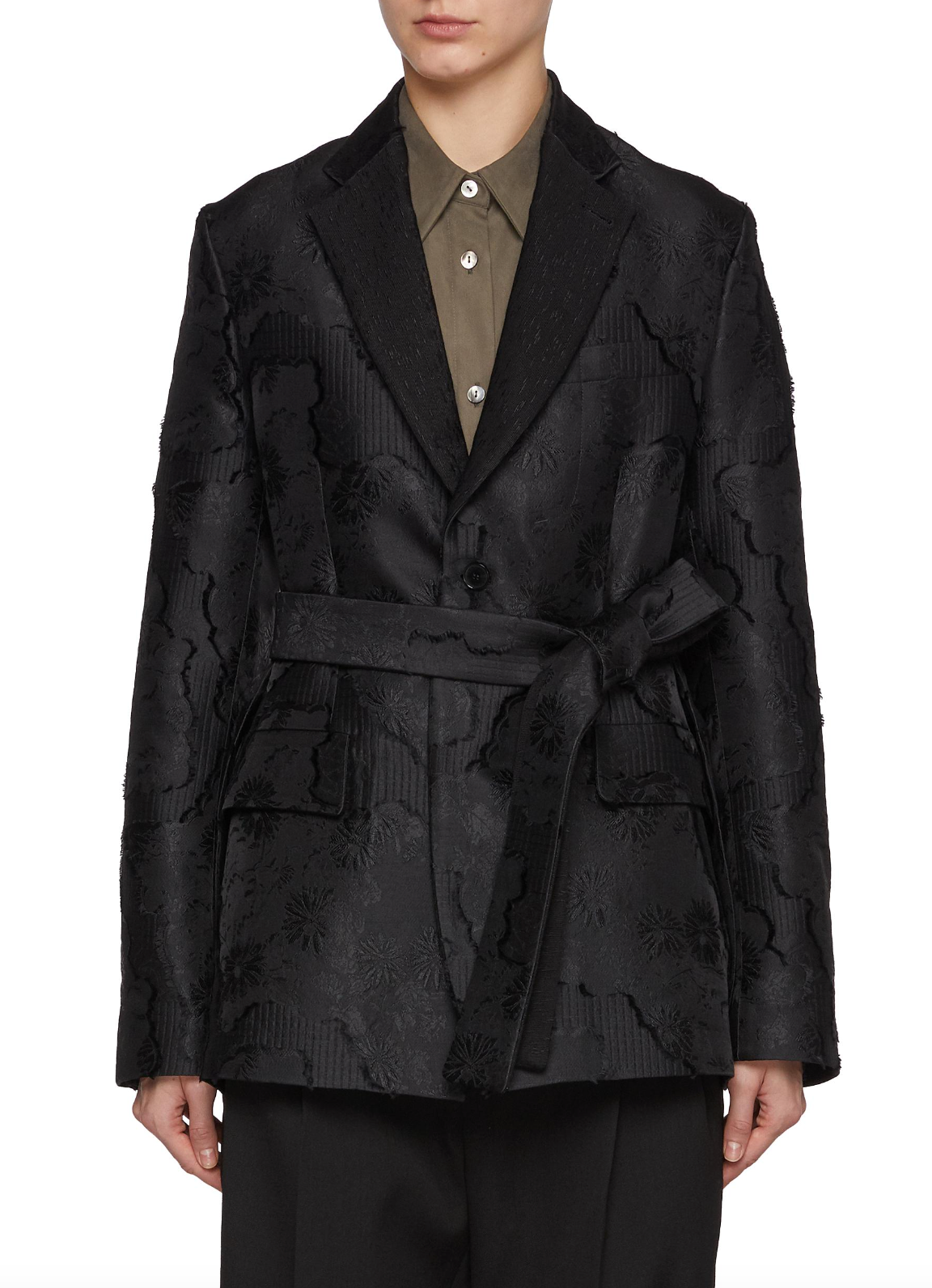 Textured elegance with Setchu's intricately designed black blazer. Deep notched lapel and is cinched at the waist with a belt, creating a flattering silhouette. Unique fabric texture adds a touch of luxury and depth.