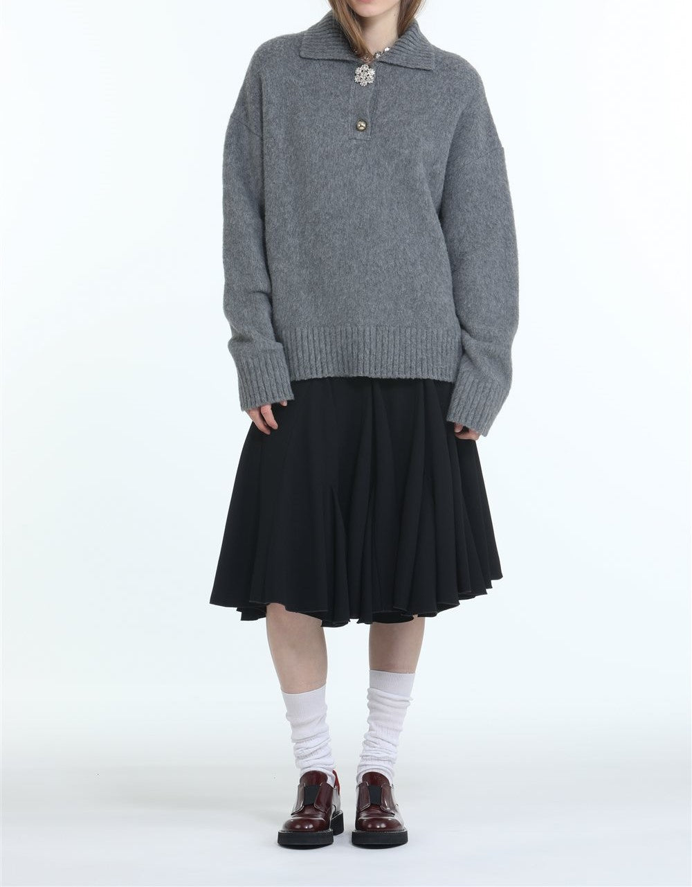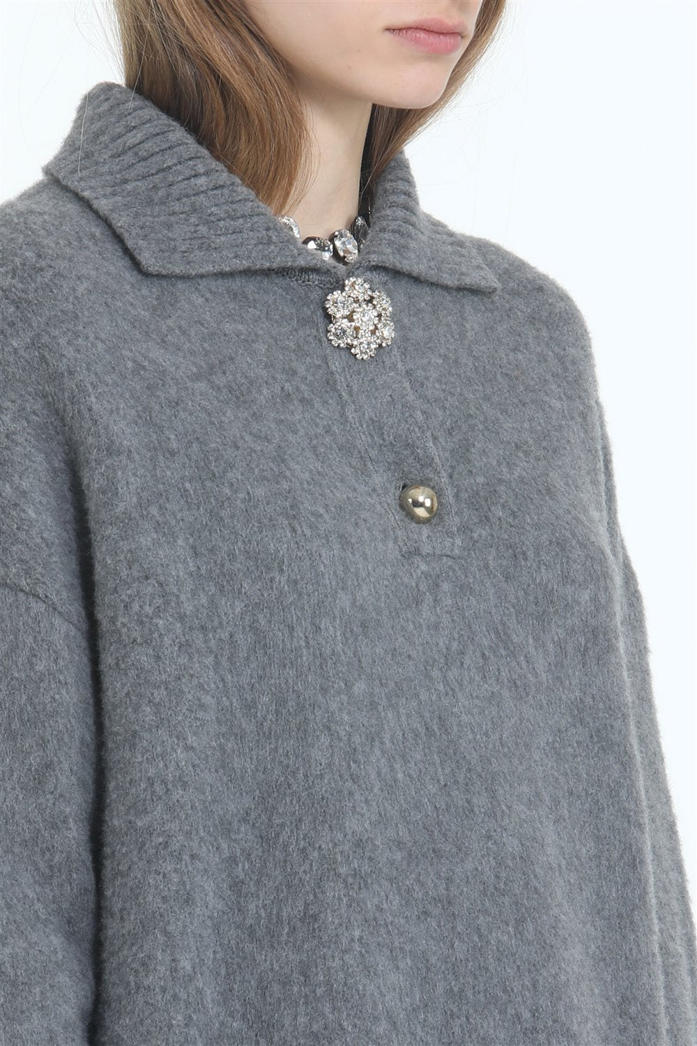 This grey n21 knitwear features two distinct buttons, adding a unique touch to its classic design.