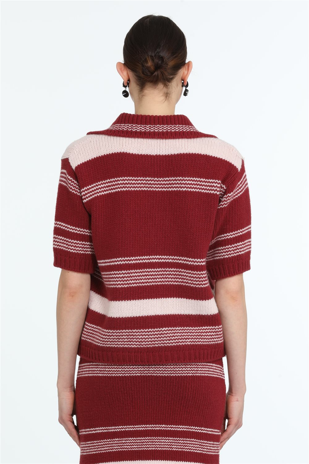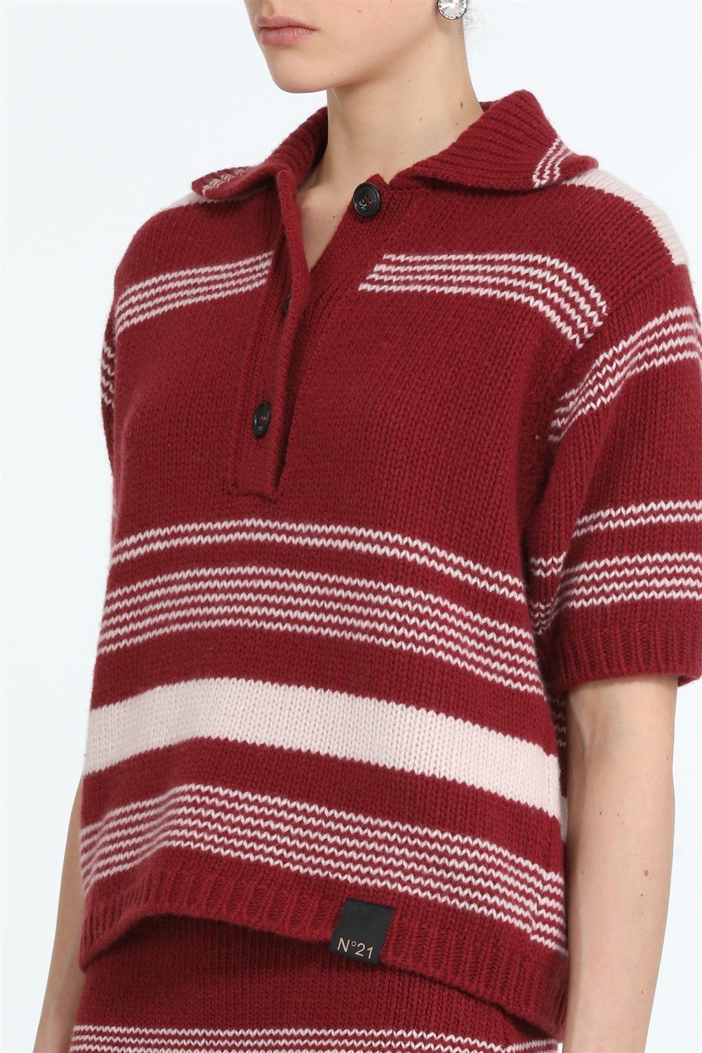 Italian-made knit polo with red and white stripes, offering timeless style and comfort.