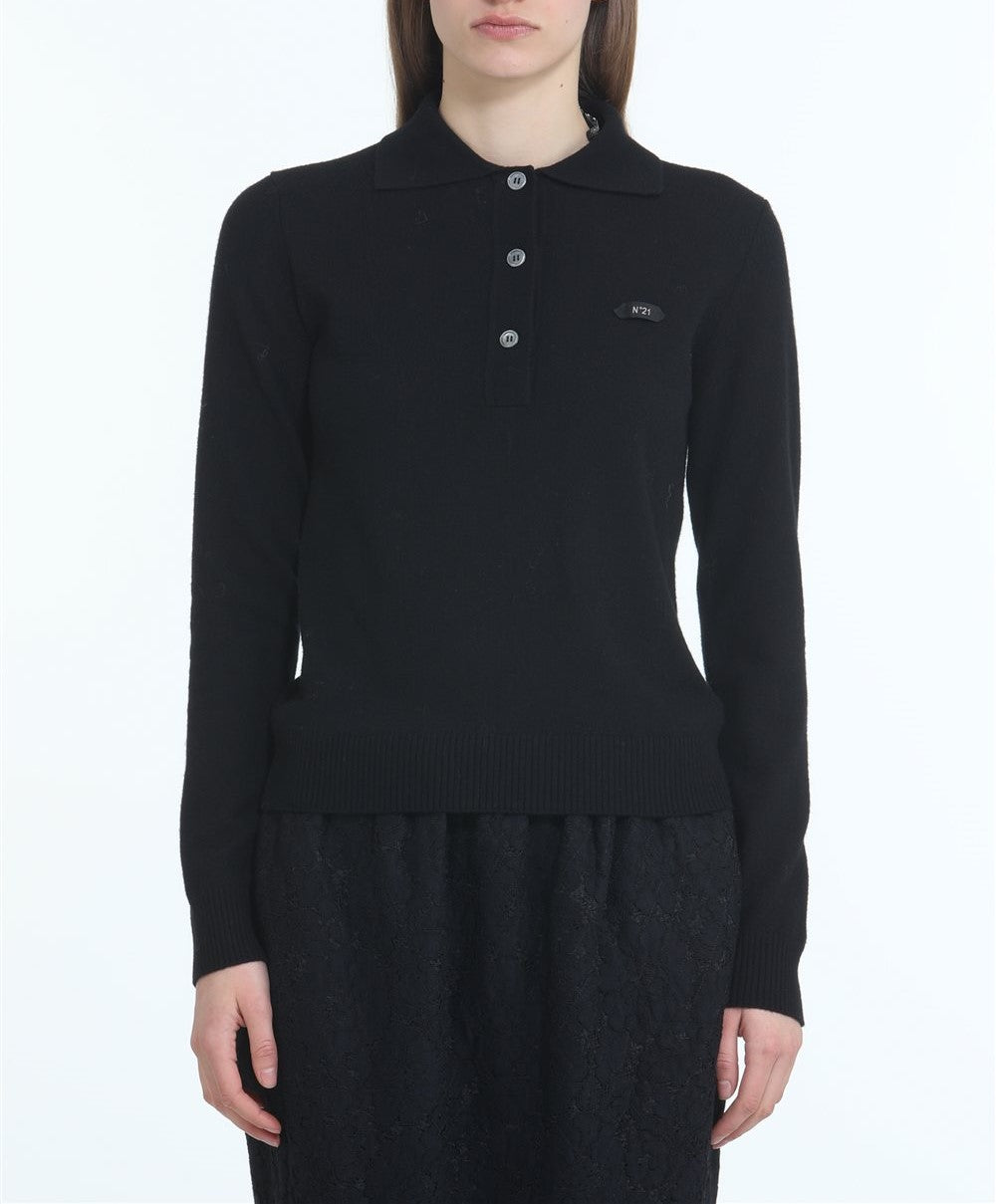 This sophisticated black polo from N21 knitwear exudes elegance and impeccable style.