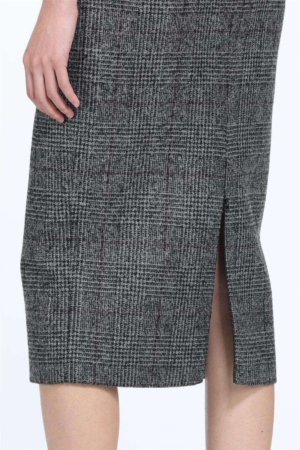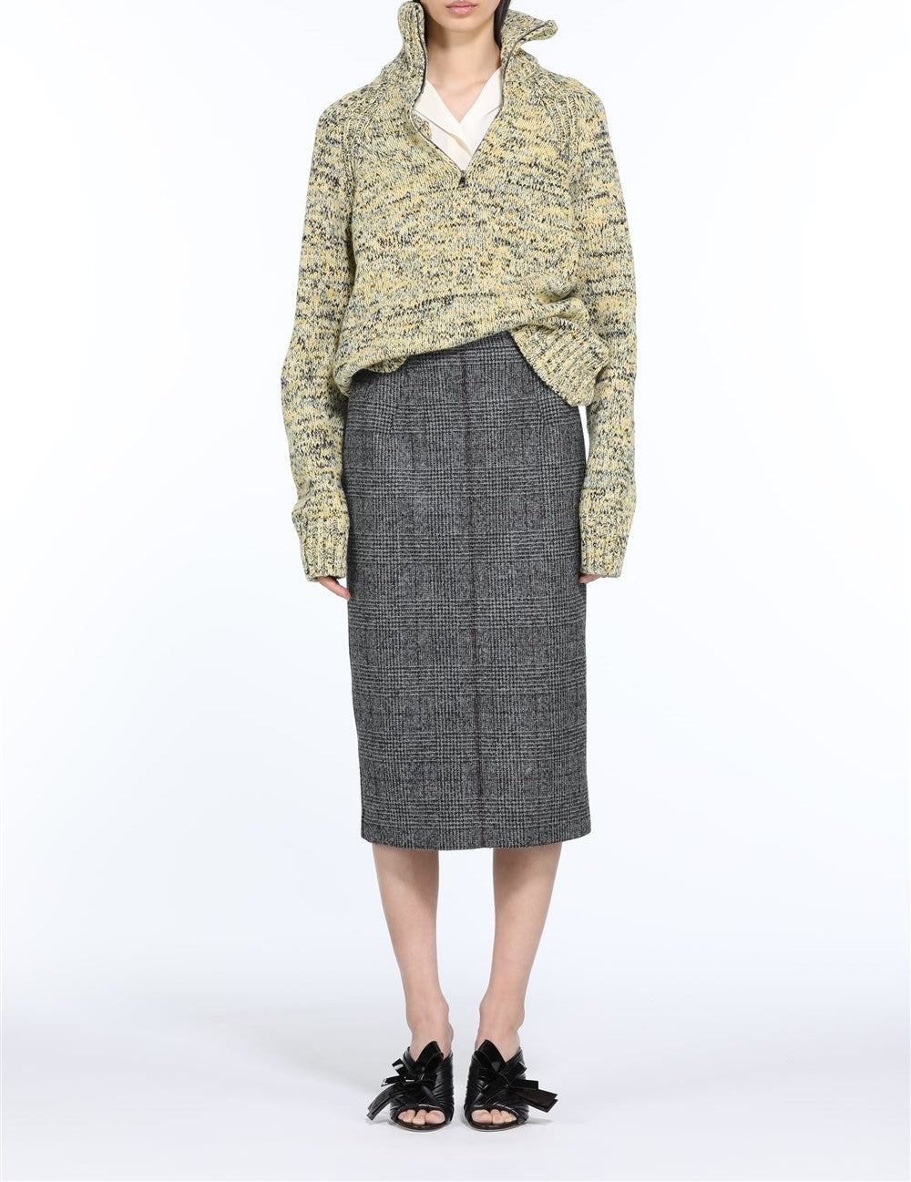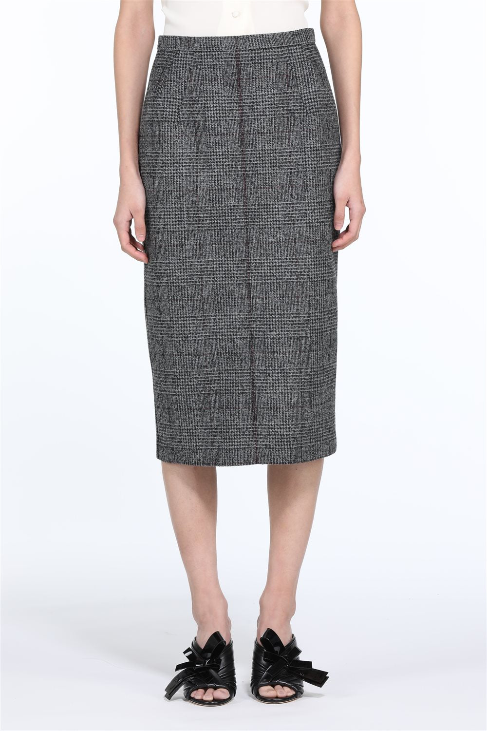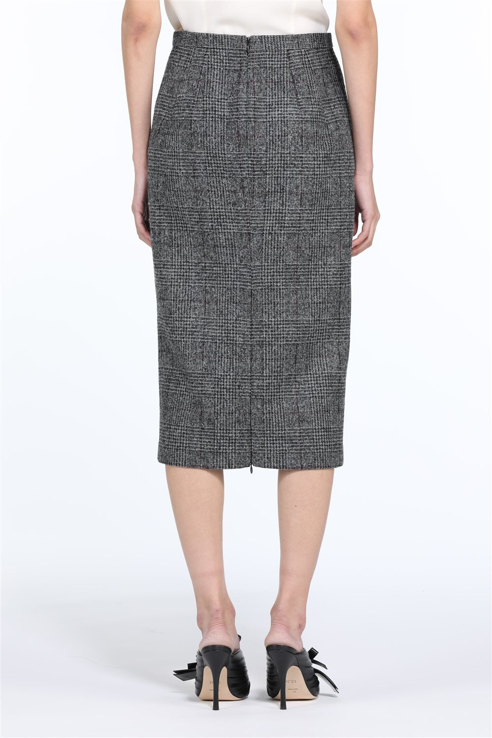 This N21 pencil skirt in black and white check features a back slit and is crafted in Italy.