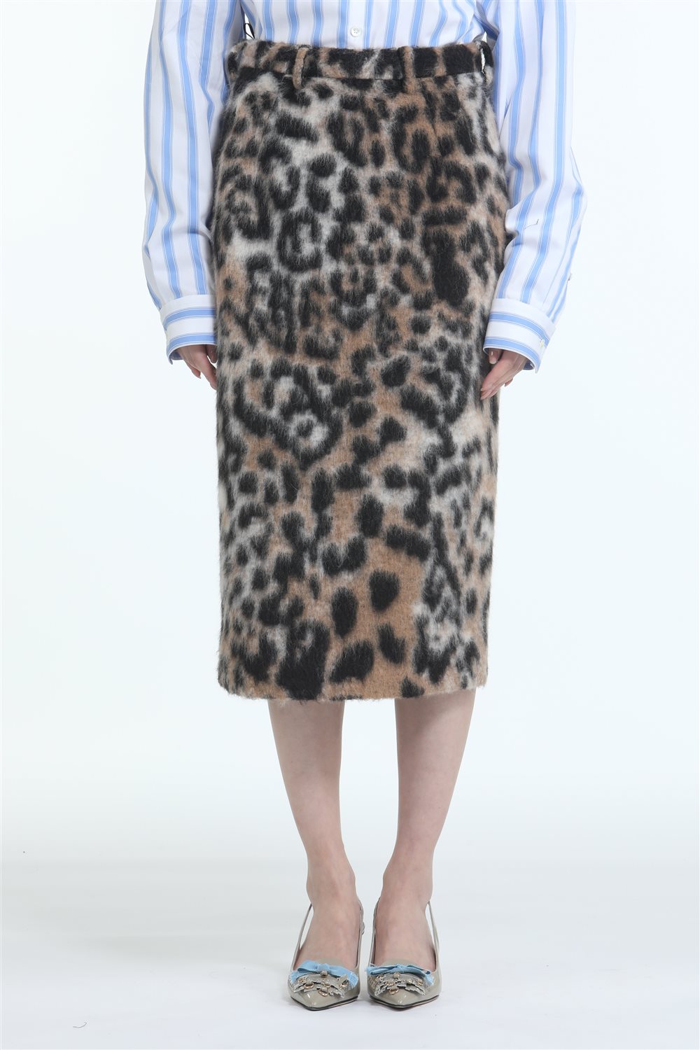 This N21 skirt features a striking black animal print design, blending bold patterns with elegant style.