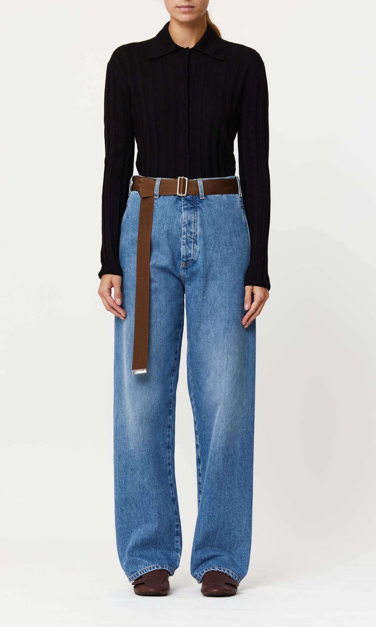 These indigo denim trousers come with a stylish brown belt, crafted with care in Italy. Perfect for adding a fun twist to your wardrobe!